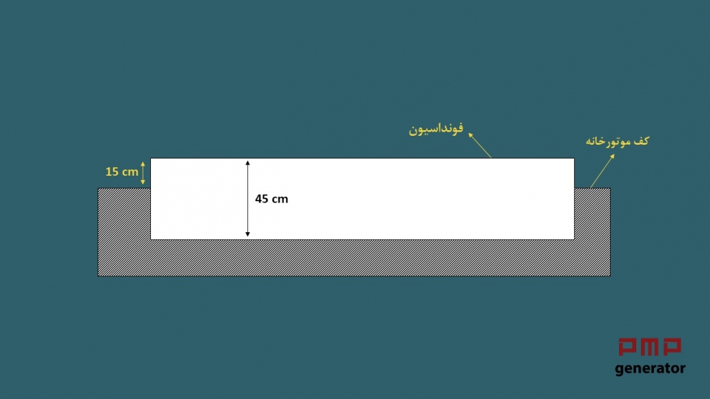 2- در قسمت دیوار پشت فونداسیون(سمت ژنراتور) باید پنجرهای حداقل به ابعاد رادیاتور وجود داشته و فیلتر هوا و یا دمپر در آن تعبیه گردد.